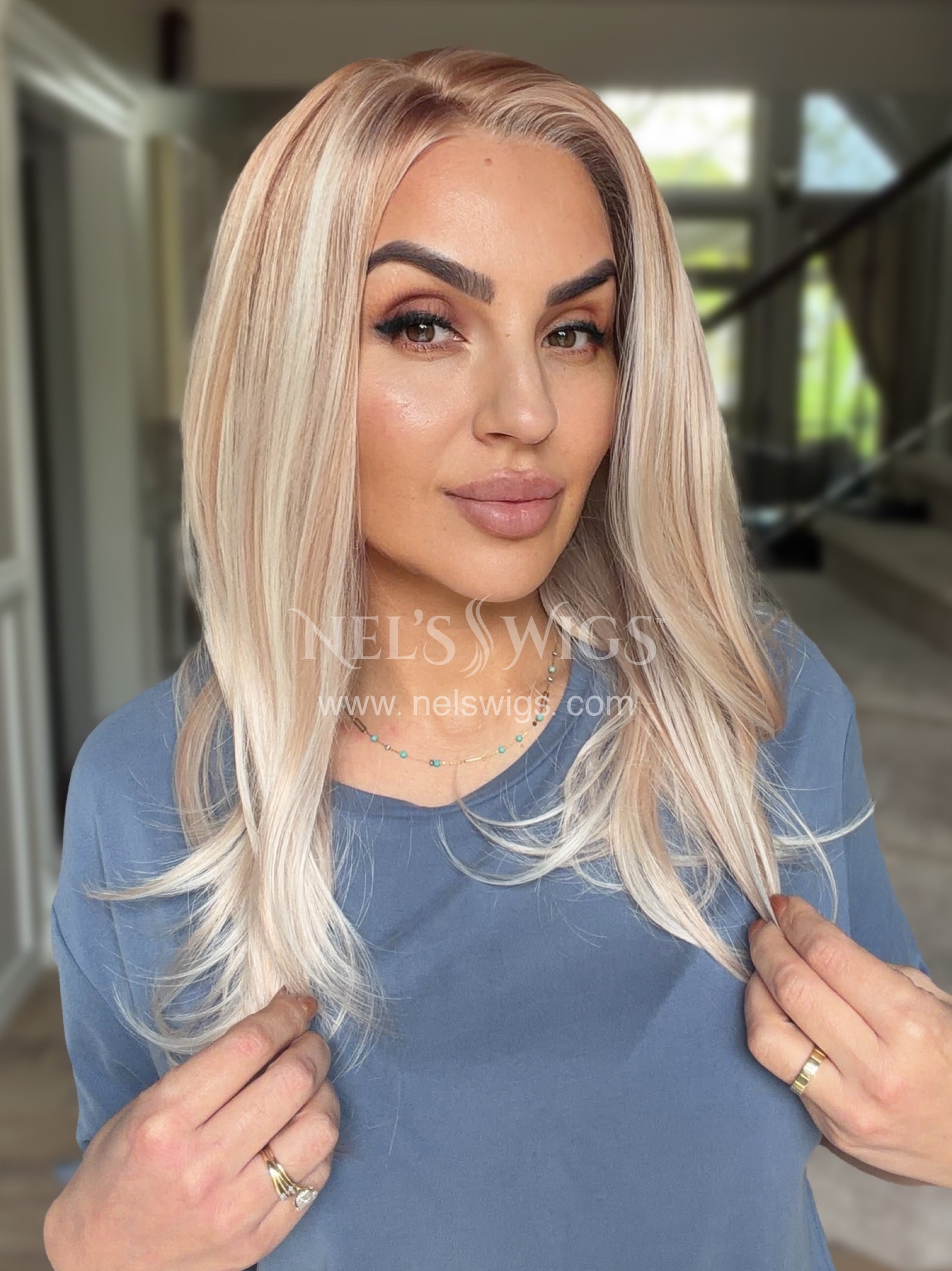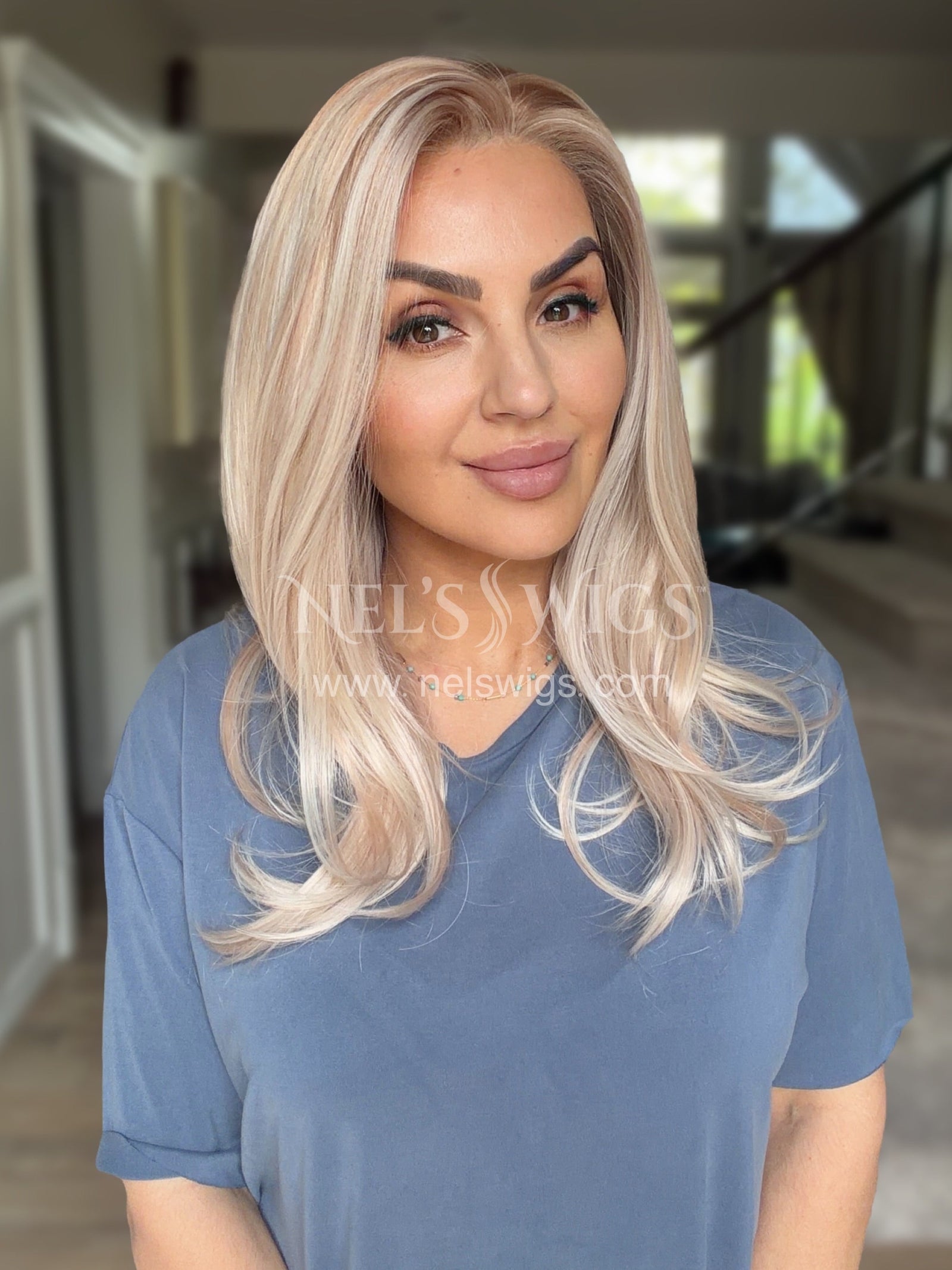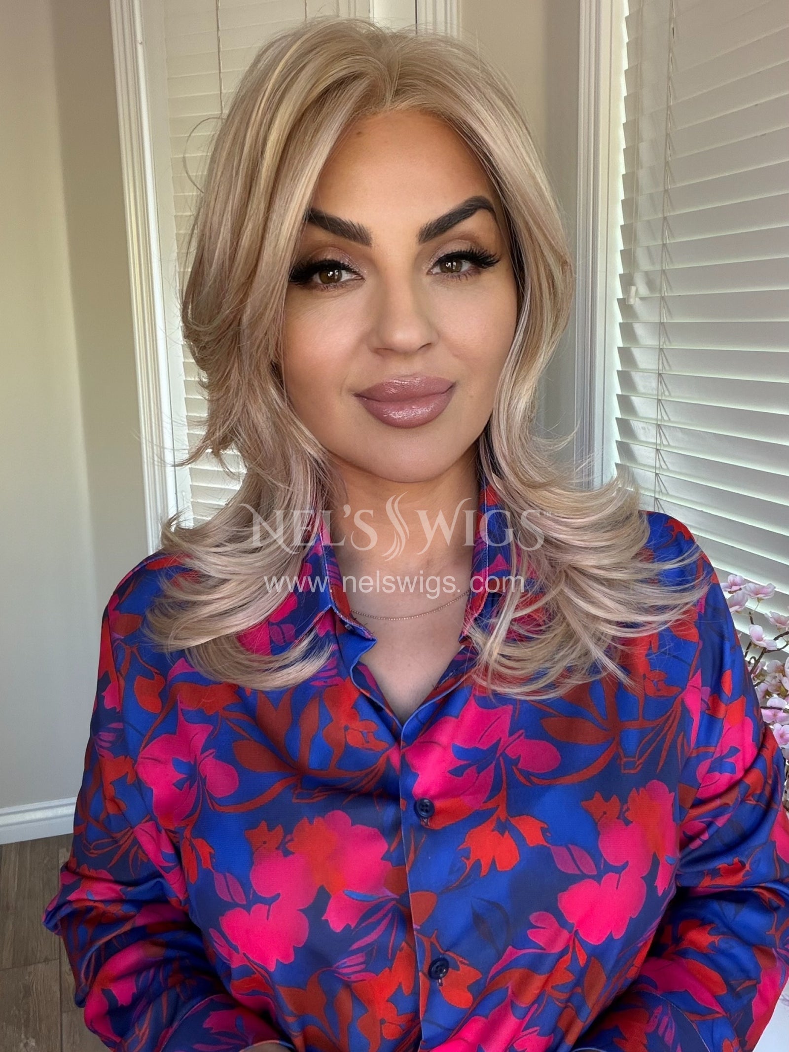 This is a very nice shoulder length wig. The colours are great and very well blended. The root is subtle and natural looking. It’s comfortable to wear on 22.5” head circumference. The price point is fabulous for such a good quality wig.