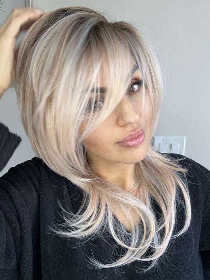 Tanya Butterfly is not only the most beautiful peachy apricot, her cut is stunning! If you are looking for something low density...this is her! Perfect as a first wig or thousandth! You, honestly, won't even feel like you are wearing a wig! Super light, overall 5/5 stars! Thank you, Nellie.